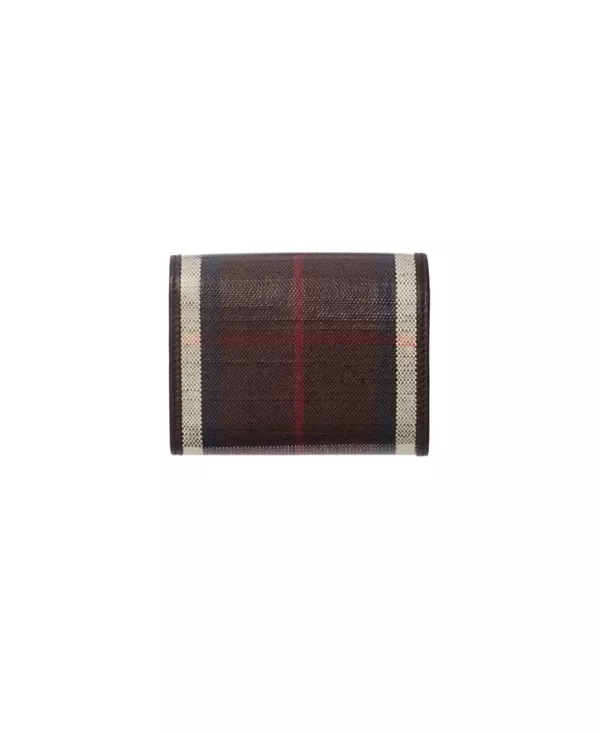 Бренд: Burberry Цвет: коричневый Этот компактный кошелек, созданный в Италии из смеси хлопка и льна, отделан гладкой телячьей кожей, вдохновлен природой и активным отдыхом на свежем воздухе. Ткань жаккардовая, с клетчатым узором Burberry, и имеет покрытие, напоминающее одежду для дождливой погоды. Дизайн дополнен фирменным знаком Knight, архивным мотивом, впервые появившимся на сумках Burberry в 1980-х годах.