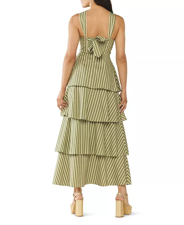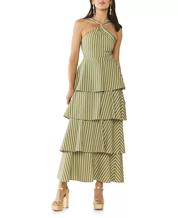 Бренд: Eddy Цвет: зеленый Платье-макси Emma, сшитое из хлопкового льна с возможностью завязывания перекрестными петлями, можно носить как с воротником-халтером, так и на одно плечо. Поверните обе петли для создания образа на одно плечо или оберните вокруг шеи для романтичного воротника-халтера, завязанного бантом сзади. Улучшенный крой по сравнению с предыдущими коллекциями дополнен присборенной спинкой для большей закрытости.