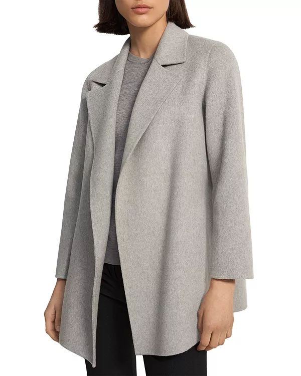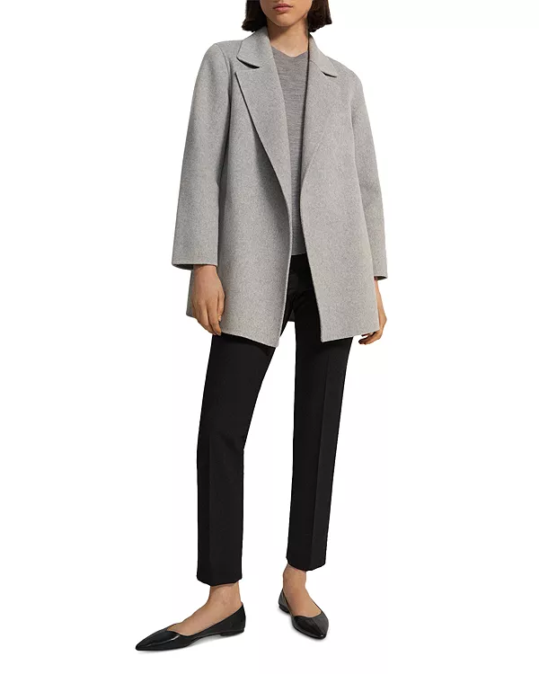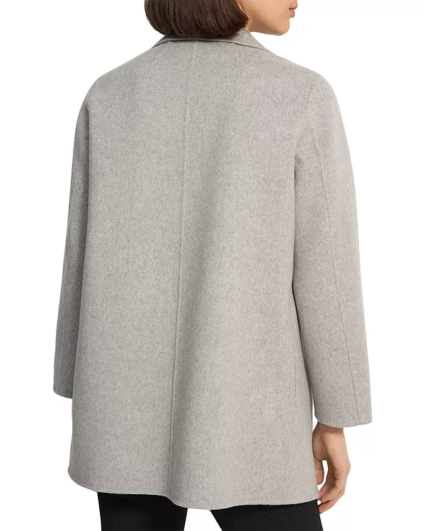Кашемировое пальто Theory свободного кроя с рукавами длиной до запястья, модель Clairene, отличается роскошным внешним видом и приятными тактильными ощущениями, что делает его актуальным вне зависимости от сезона.