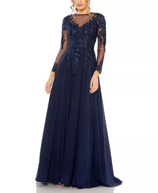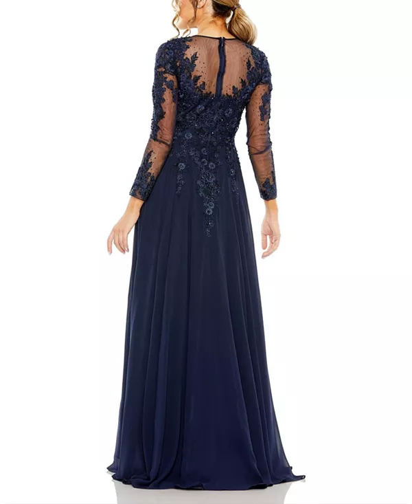 Платье из кружева, расшитое вручную драгоценными камнями. Mac Duggal, синий