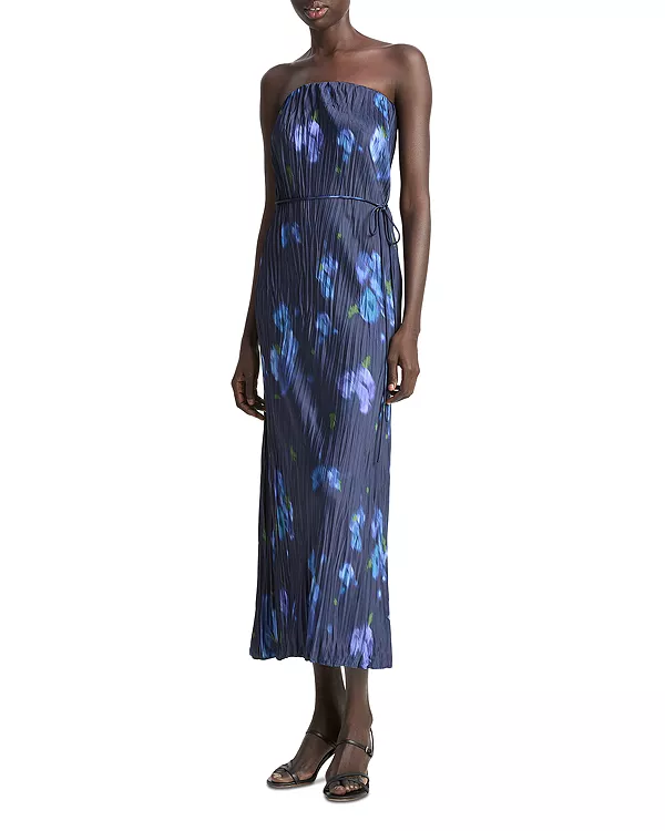 Платье миди без бретелей с цветочным принтом Vince, синий
