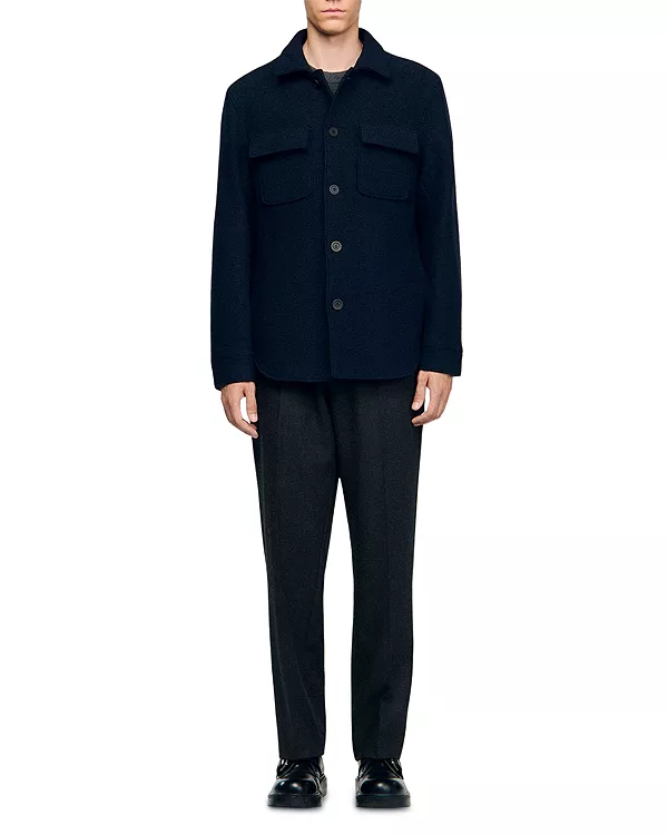 Рубашка-Пиджак из шерстяной букле Sandro, синий 52 759₽