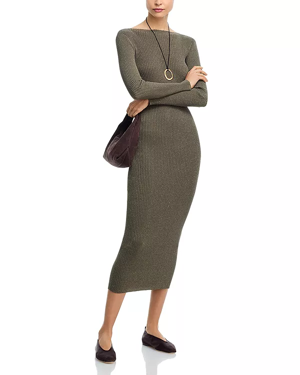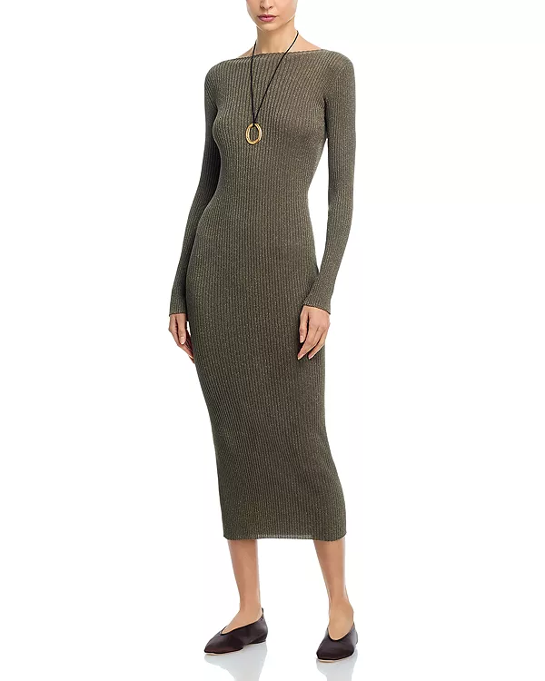 Длинное макси-платье Blake в рубчик с длинными рукавами Leset, зеленый 49 967₽