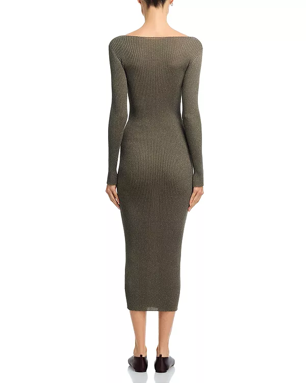 Длинное макси-платье Blake в рубчик с длинными рукавами Leset, зеленый