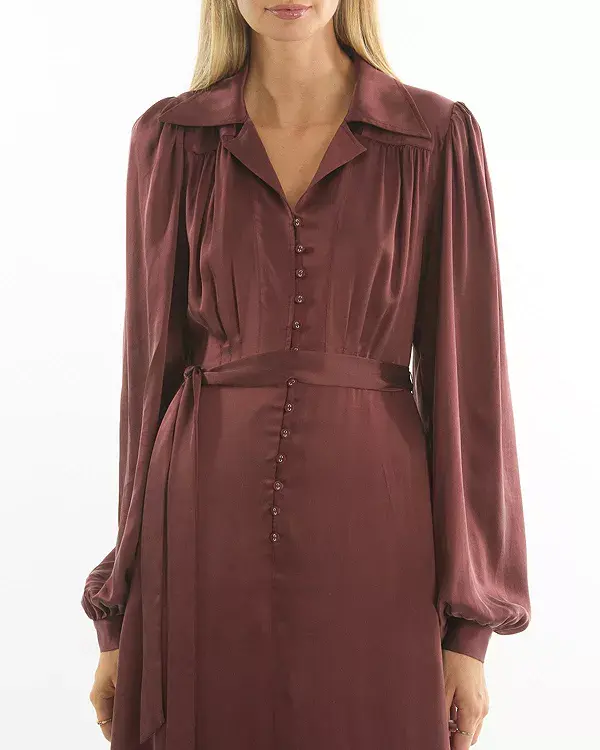 Романтическое платье Poet, изготовленное из 100% органического шелкового жатого шифона, отличается легкой, струящейся драпировкой. Дизайн с рюшами на вырезе, расклешенными манжетами и многослойным подолом создает силуэт в винтажном стиле с изящным движением и очарованием.