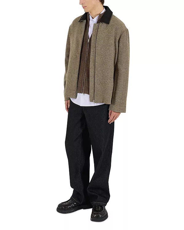 Бренд: Krost Цвет: бежевый Пальто из шерстяной ткани сочетает в себе классический крой и современные материалы. Оно имеет заостренный воротник из контрастной искусственной замши, застежку-молнию спереди и наклонные прорезные карманы. Полностью на подкладке для комфорта и теплоизоляции, это пальто выделяется благодаря тонким контрастам, оставаясь при этом практичным и элегантным.