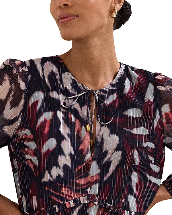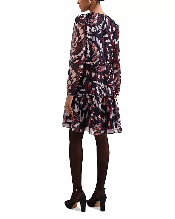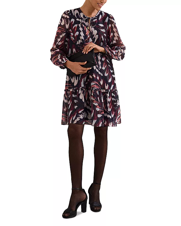 Идеальное сочетание современности и женственности, мини-платье с принтом от Phase Eight подойдет для работы, вечеринок и торжественных мероприятий. Оттенки темно-синего и бордового создают современный вихреобразный узор, а рукава-фонарики и многослойный силуэт добавляют образу легкого объема.