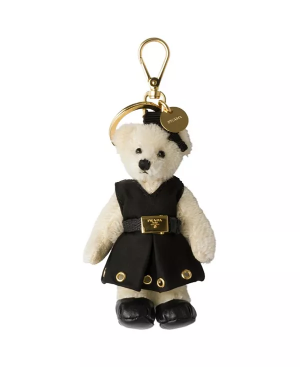 Брелок для плюшевой сумки с металлическим кольцом Prada, черный 76 940₽