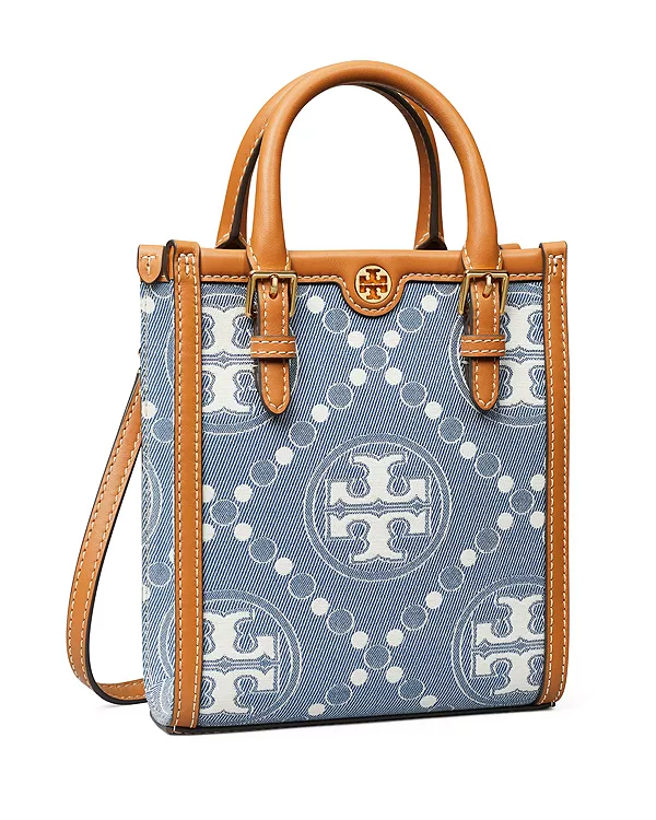 Миниатюрная джинсовая сумка-тоут с монограммой. Tory Burch, синий 28 167₽