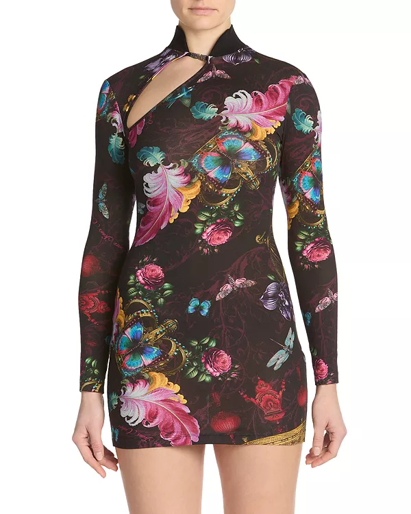 Платье с длинными рукавами и принтом Versace Jeans Couture, мультиколор