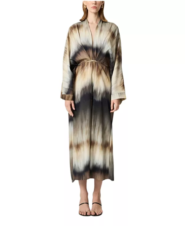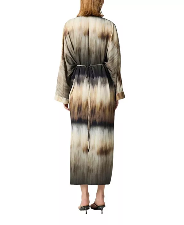 Особенности: V-образный вырез Это макси-платье с принтом в стиле тай-дай, выполненное в свободном крое с ниспадающими рукавами «летучая мышь», отличается непринужденной элегантностью и свободным силуэтом. Изготовленное из легкой тканой ткани, оно имеет глубокий V-образный вырез и регулируемый пояс на талии, который подчеркивает силуэт и позволяет создавать разнообразные образы. Принт в стиле батик добавляет современный богемный штрих, делая это макси-платье идеальным выбором для летних вечеров, отпуска или повседневной носки в стиле casual. Застежка Без подкладки Импортный товар