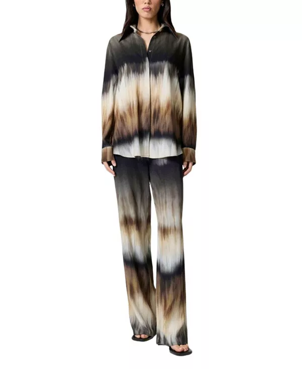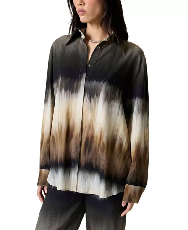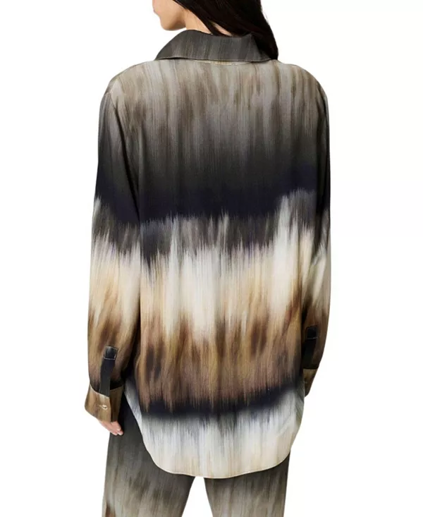 Особенности: Эта стильная рубашка с принтом в стиле тай-дай изготовлена из легкой тканой ткани и имеет свободный крой для комфорта в течение всего дня. Благодаря длинным рукавам и скрытой застежке на пуговицы, она создает чистый, современный образ, демонстрируя уникальный принт в стиле батик. Идеально сочетается с классическими брюками для более элегантного стиля или с джинсами для повседневного, непринужденного образа. Импортный товар