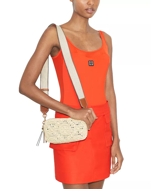 Сумка через плечо Miller t с монограммой из рафии Tory Burch, бежевый 50 700₽