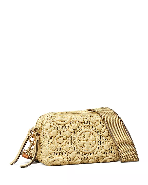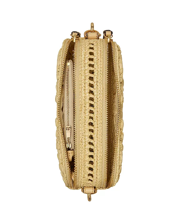 Мини-сумка через плечо Miller изготовлена вручную из натуральной рафии, имеет два отделения на молнии и вырезанный лазером двойной логотип в виде буквы Т. Носите ее со съемным ремешком или без него.