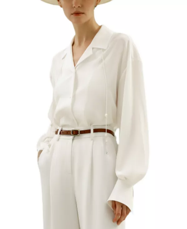 Бренд: Lilysilk Цвет: белый Блузка от LILYSILK отражает акцент бренда на изысканных базовых вещах. Сшитая из шелкового крепа, она отличается тонким V-образным вырезом с отложным воротником и лацканами, напоминающими костюмные. LILYSILK добавляет утонченности классической блузке. Свободный силуэт дополнен съемными элегантными завязками из барочного жемчуга и перьев для создания элегантного образа. Свободный крой, идеально подходящий для отдыха. Носите ее с джинсами или классическим костюмом сейчас и в будущем.