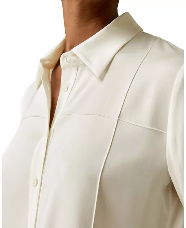 Бренд: Lilysilk Цвет: белый Эта модель, отличающаяся уникальными деталями, такими как объемные складки, воплощает минималистичный стиль. Эта базовая, но в то же время оригинальная вещь подходит для самых разных образов: как в строгом, так и в расстегнутом виде для непринужденной, расслабленной атмосферы. Создайте множество образов, от повседневных до городских, сохраняя при этом нотку непринужденности. Сочетайте ее с приталенным блейзером и брюками с высокой талией для создания изысканного образа.