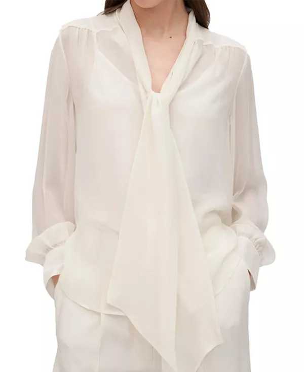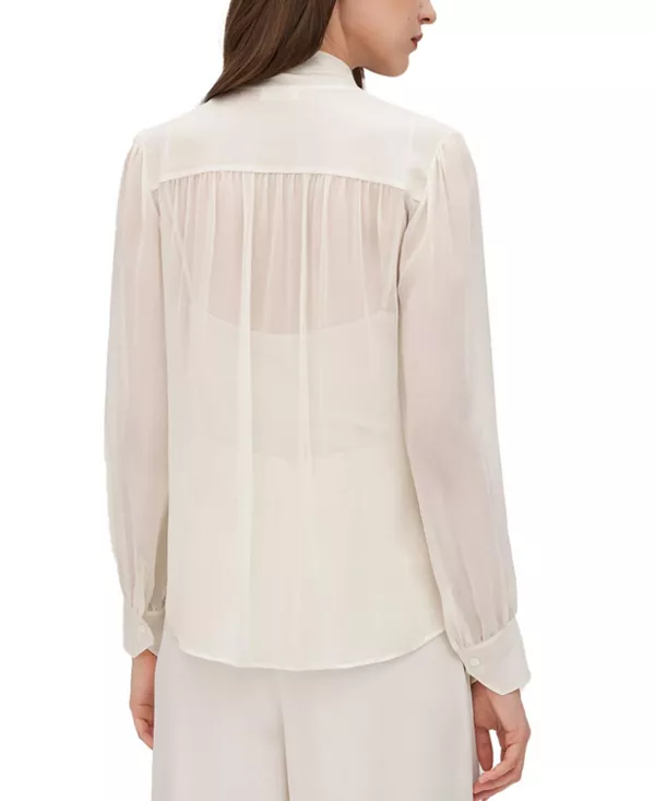 Бренд: Lilysilk Цвет: белый Современная интерпретация восхитительной классики: мы переосмыслили нестареющую блузку с бантом «кошачий глаз» в прозрачном шелковом жоржете. Бант, воплощение чувственности и шика, аккуратно застегивается на шее, добавляя изысканности. Носите ее с майкой для создания делового повседневного образа или под строгим блейзером, позволив женственному банту выглядывать из-под блузки.