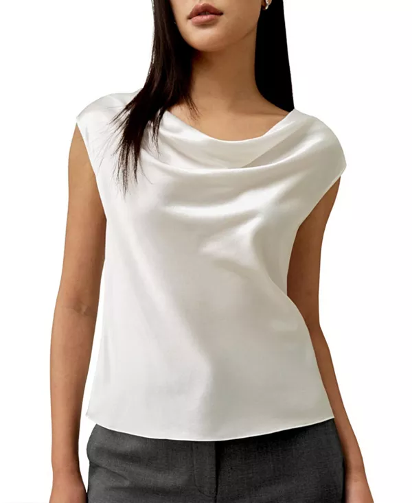 Бренд: Lilysilk Цвет: белый Собираетесь ли вы в отпуск или просто хотите выглядеть на все сто в офисе, этот топ с воротником-хомутом станет вашим лучшим выбором. Благодаря ниспадающему воротнику-хомуту, это гораздо больше, чем просто базовый топ без рукавов. Он изготовлен из 100% шелка шармез, что означает, что он не только терморегулирующий, но и невероятно дышащий. Слегка спущенные плечи придают ему элегантность, изысканность и универсальность, а также подчеркивают блеск и драпировку шелка.