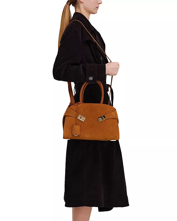 Сумка-Обнимашка из замши Ferragamo, коричневый 300 883₽
