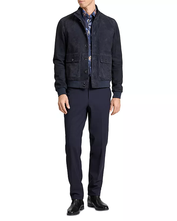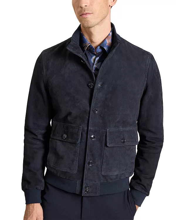 Бренд: Ted Baker Цвет: синий Куртка Weir - это изысканное воплощение повседневной элегантности, изготовленная из натуральной замши, которая отличается роскошной мягкостью. Полностью на подкладке для комфорта, она имеет современный силуэт с классической застежкой на пуговицы и практичными накладными карманами-гармошками - идеально подходит для выходных приключений или неспешных прогулок по городу.