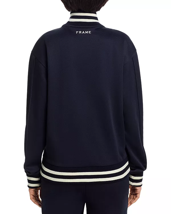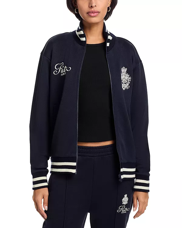 Полосатая ребристая отделка на воротнике, манжетах и подоле