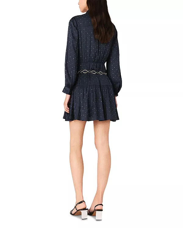 Это атласное платье-рубашка выделяется своим легким блеском и металлическими заклепками, которые придают образу современный, дерзкий вид. Благодаря струящемуся крою и безупречной драпировке оно идеально подойдет для любого случая.