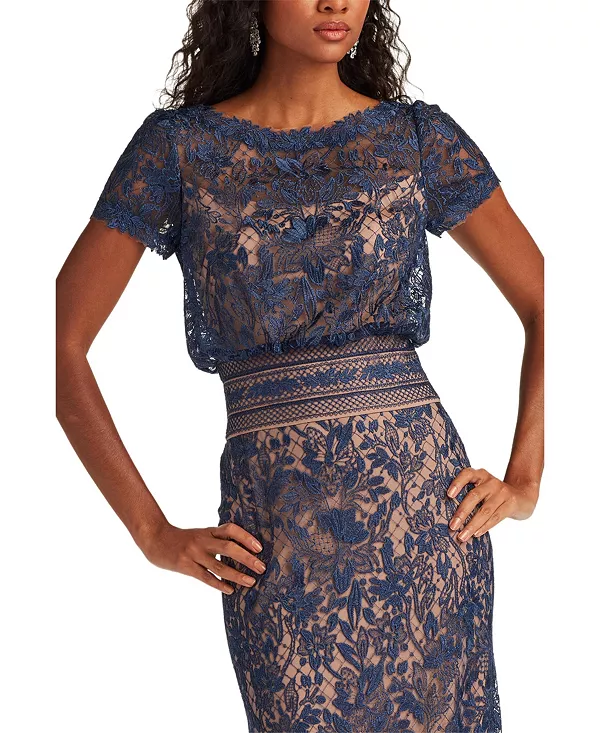 Платье-Блузон Calista с вышивкой Tadashi Shoji, синий