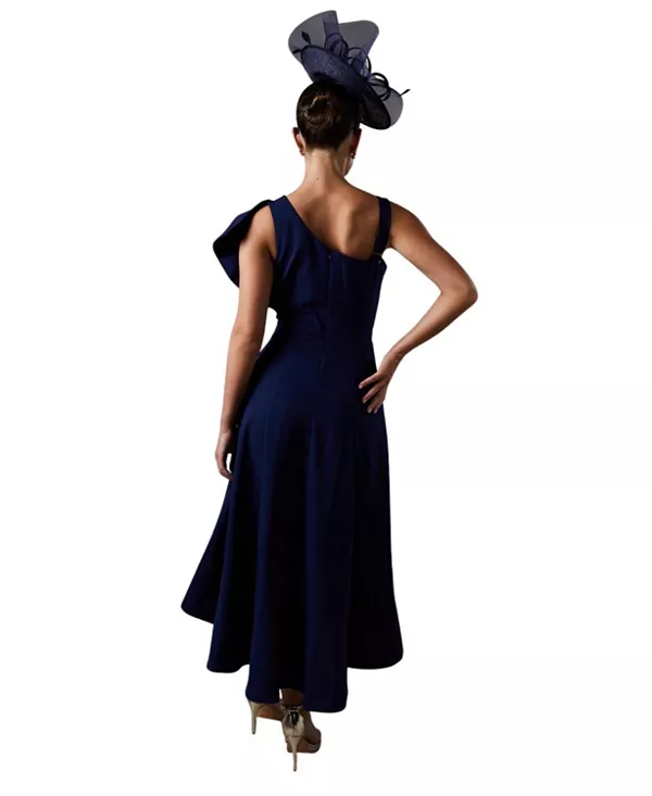 Платье миди из крепа с оборками на одно плечо Coast, синий