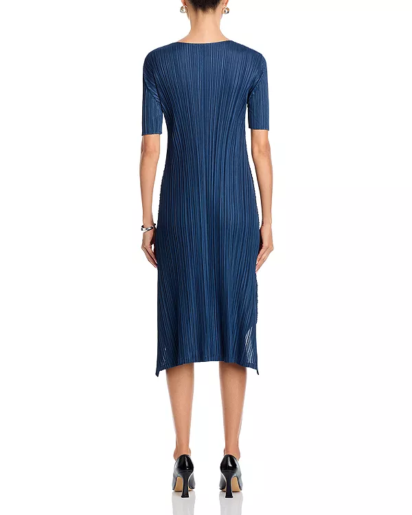 Платье с плиссированным подолом и разрезом Pleats Please Issey Miyake, синий