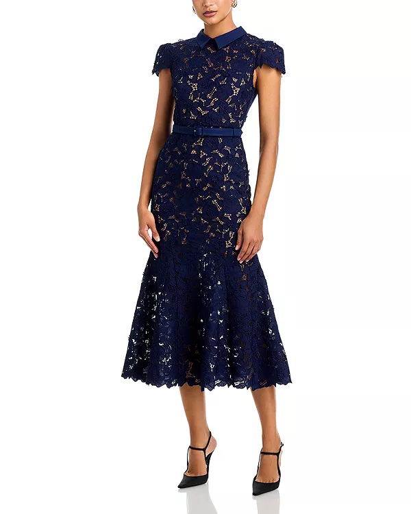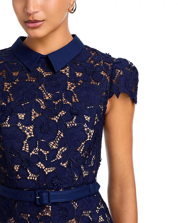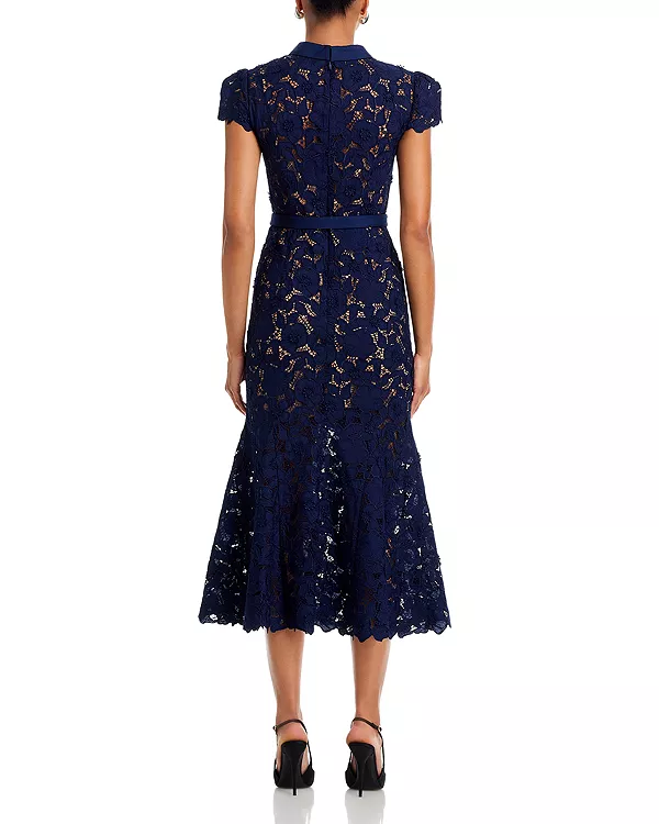 Платье миди из гипюрового кружева Self-Portrait, синий