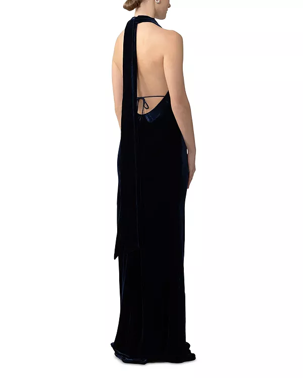 Платье из жемчужного бархата Sau Lee, синий