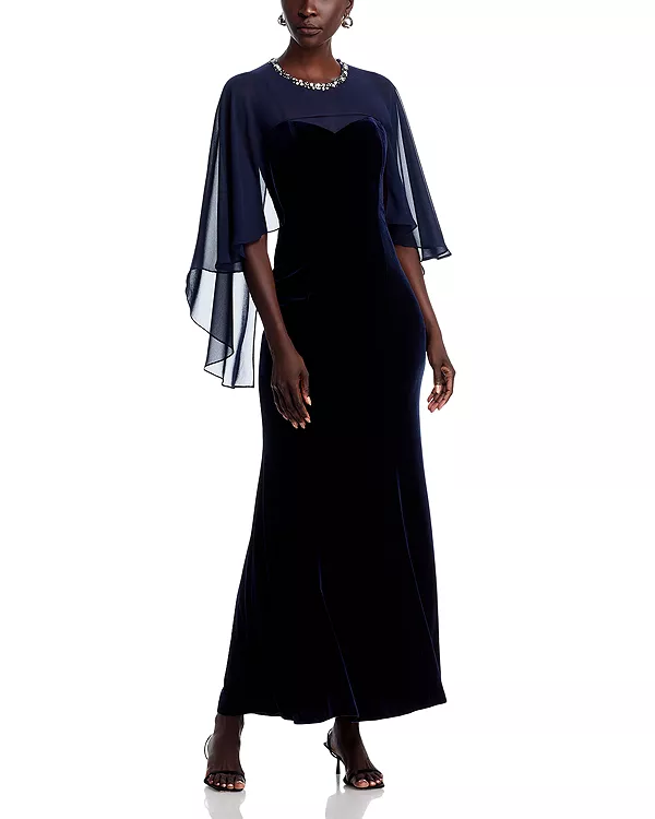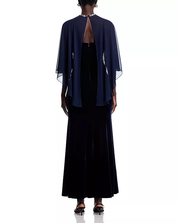 Платье-Русалка с накидкой и декорированным воротником Eliza J, синий