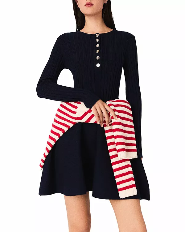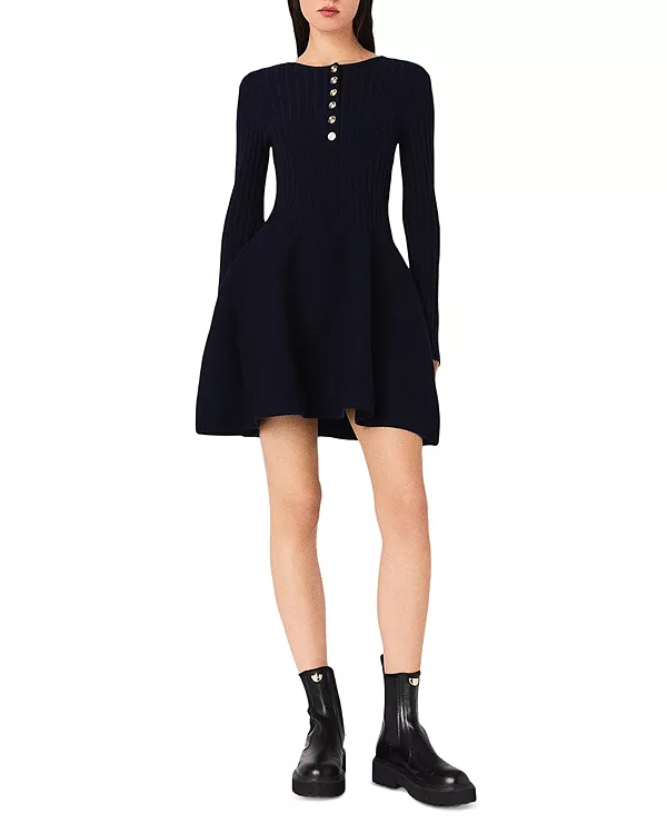 Вязаное платье с расклешенной юбкой Maje, синий 22 619₽