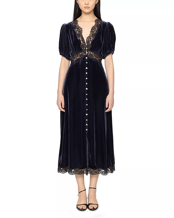 Платье миди Clarice с пышными рукавами Sea, синий