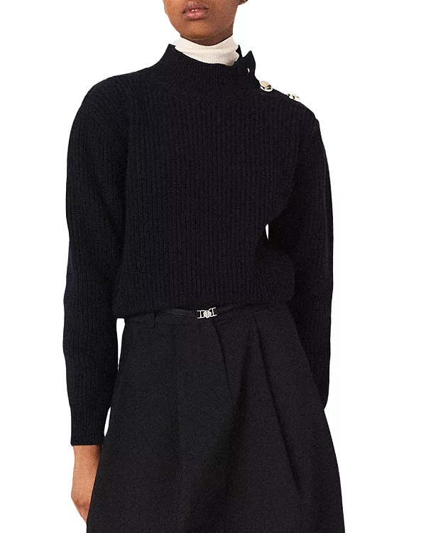 Шерстяной свитер с высоким воротником Maje, синий 29 251₽