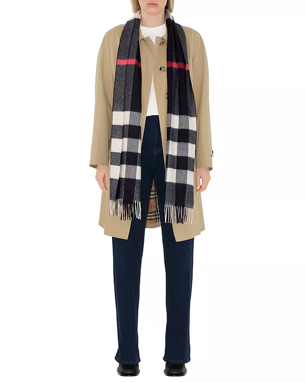 Шарф Burberry Check из двухстороннего кашемира, изготовленный на шотландской фабрике, основанной в 1797 году. Ткань, сотканная на традиционных ткацких станках, промывается в местной родниковой воде и подвергается еще двум стиркам для достижения ультрамягкой текстуры и приподнятого ворса.