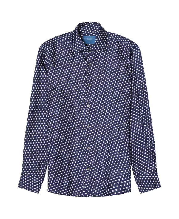 Фирменная шелковая рубашка в горошек от Рейнольдса Robert Talbott, синий