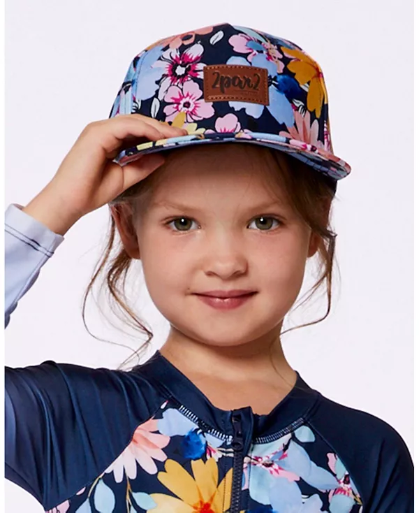 Детская шапочка с цветочным принтом для девочек. Deux Par Deux, синий