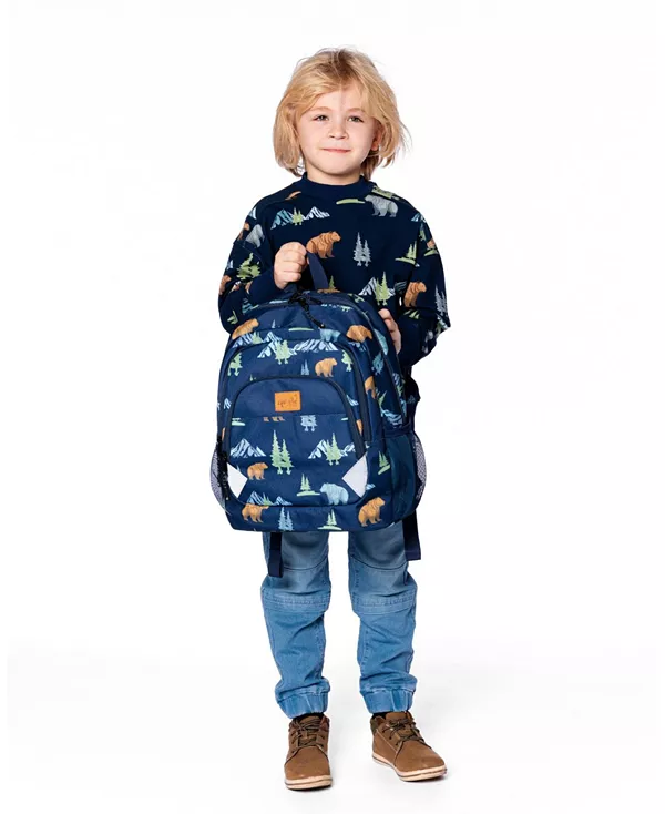 Этот экологичный рюкзак с синим градиентным принтом в виде динозавров, идеально подходящий для малышей, отправляющихся в детский сад или подготовительную группу, милый, красочный и невероятно удобный для переноски. Изготовленный из ткани оксфорд, созданной из переработанных пластиковых бутылок, этот рюкзак имеет три отделения разного размера, а также карман для бутылки с водой, мягкую спинку и регулируемые поясные и плечевые ремни.