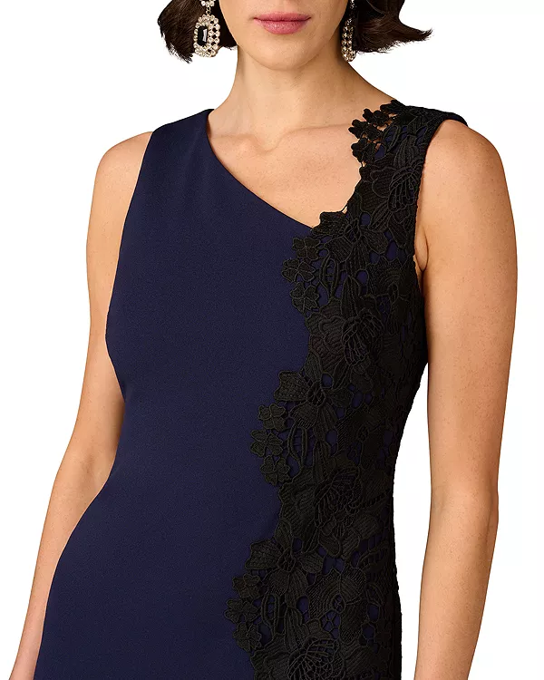 Платье-Миди из крепа с асимметричным вырезом Aidan Mattox, синий 25 854₽