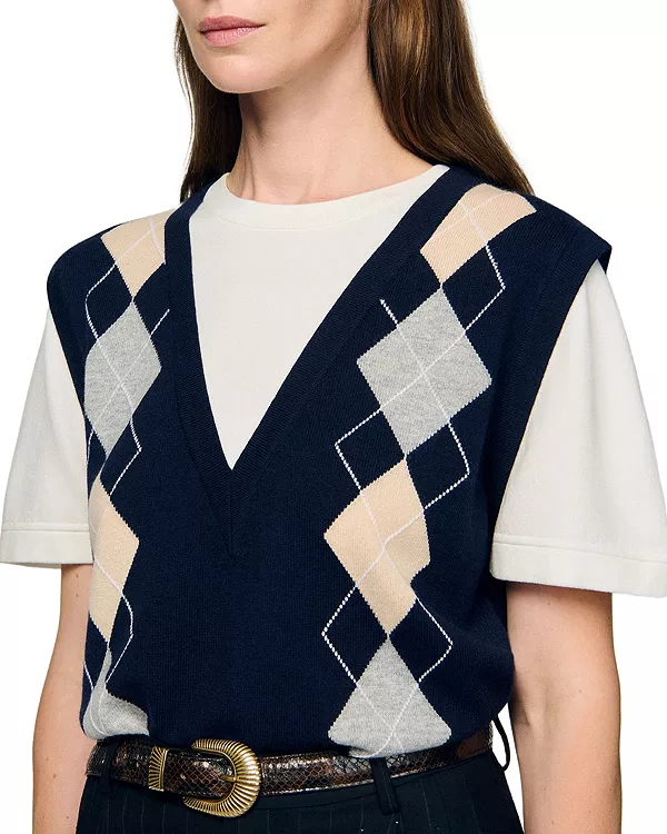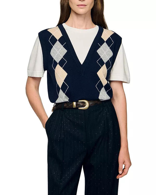 Многослойный образ: жилет, топ Sandro, синий 29 683₽