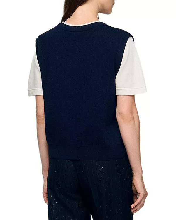 Многослойный жилет из шерсти и кашемира с прикрепленной футболкой с круглым вырезом и короткими рукавами