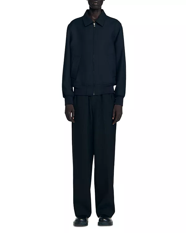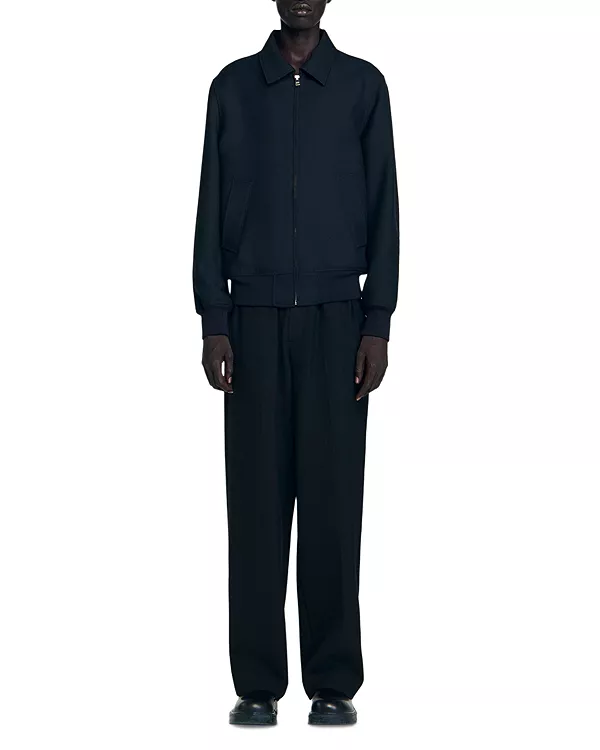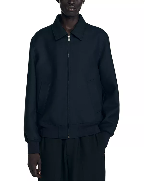 Повседневная куртка на молнии с отложным воротником, длинными рукавами и передними прорезными карманами.