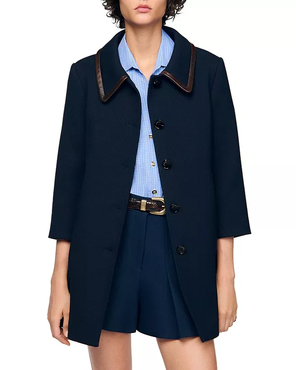 Куртка с кожаной отделкой Sandro, синий 54 448₽