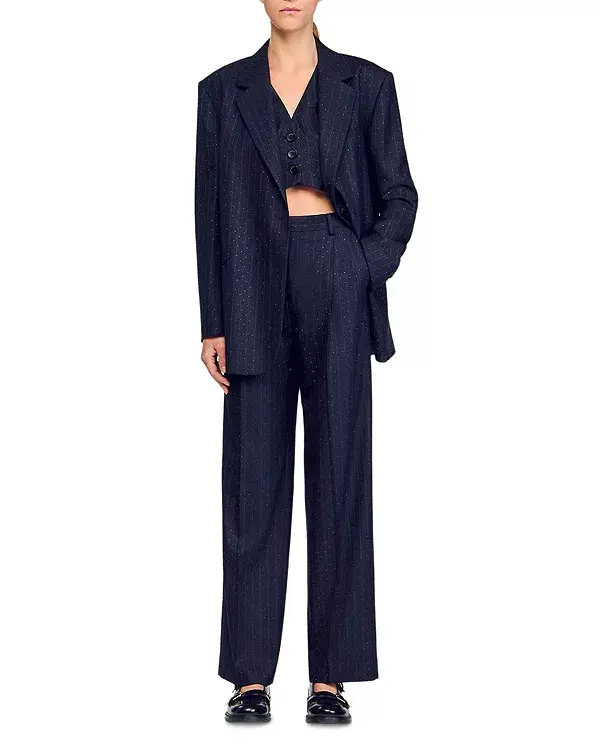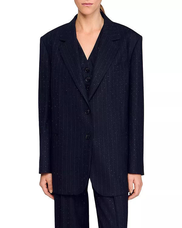 Полосатый пиджак, украшенный стразами Sandro, синий 53 277₽