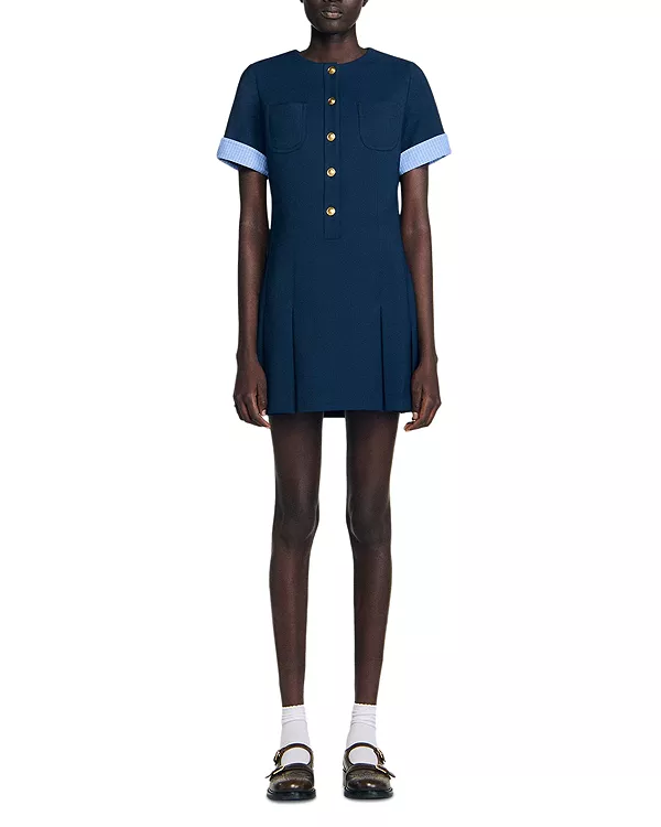 Короткое плиссированное платье Sandro, синий