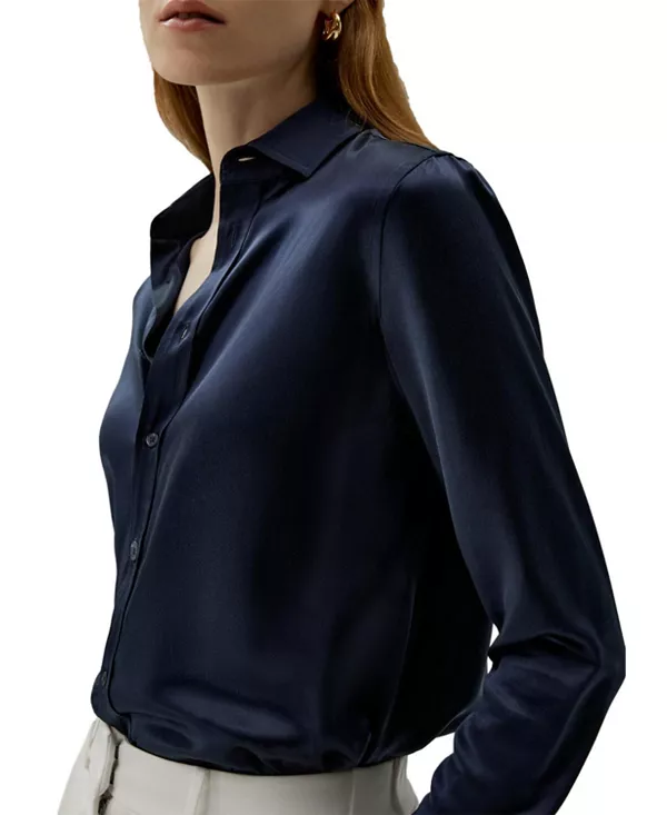Шелковая рубашка, сшитая на заказ Lilysilk, синий