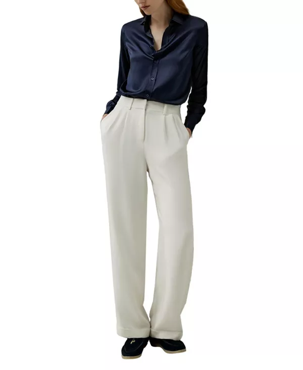 Классическая рубашка с длинными рукавами и расстегнутой планкой - это базовый вариант, пропорции которого более облегающие и утонченные, что подходит для работы, где важен аккуратный стиль.