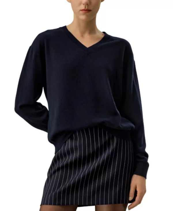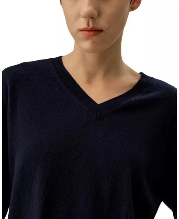Детский кашемировый свитер с V-образным вырезом Lilysilk, синий