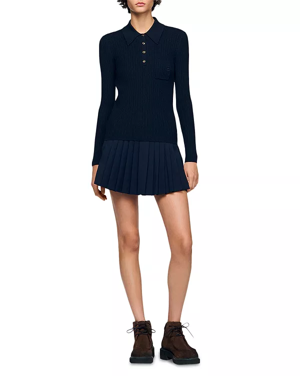Свитер-Поло крупной вязки Sandro, синий